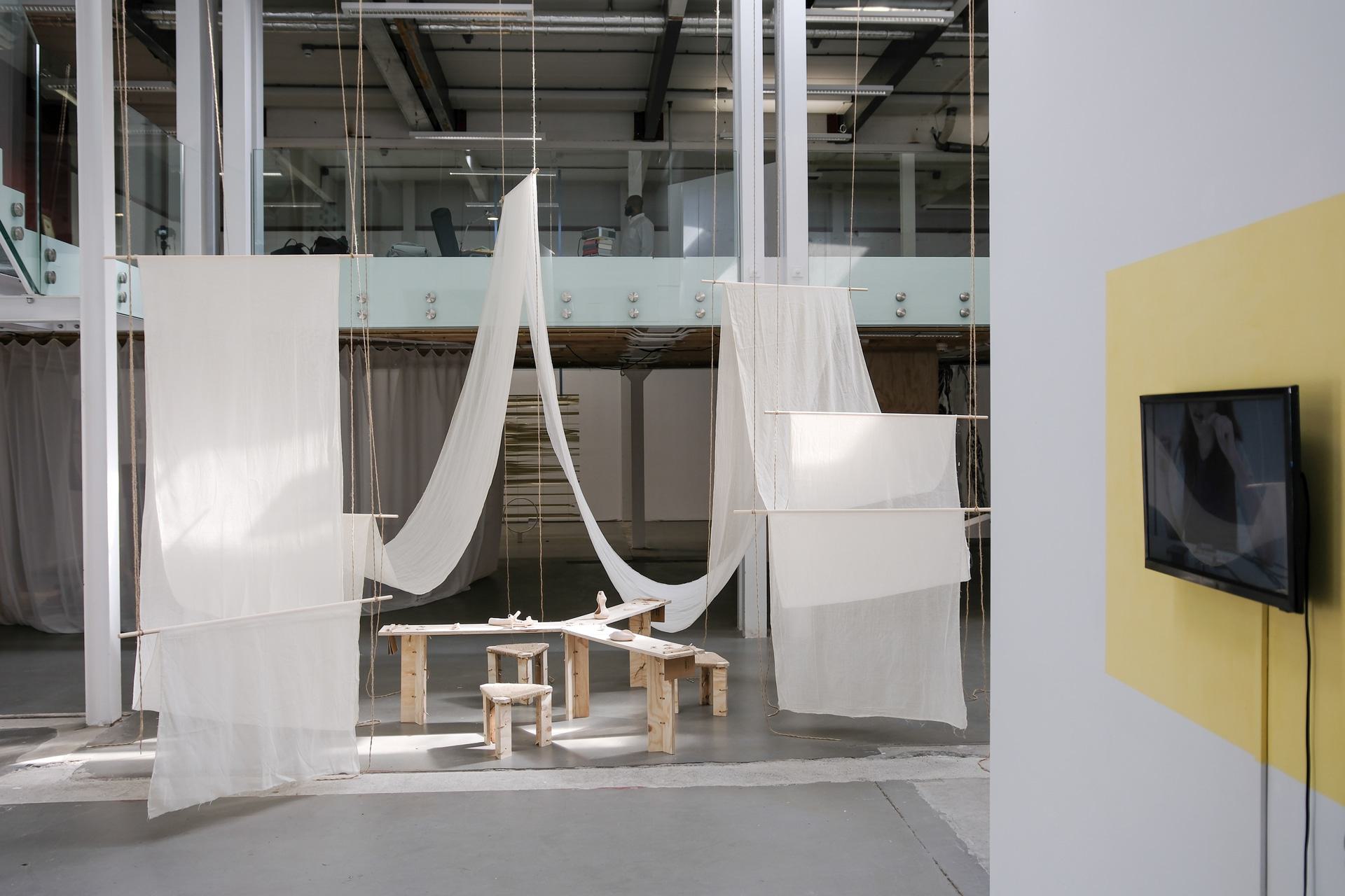 This work captures the current state of the artist’s practice more than a finished product. Formulated as an intimate space, it is an invitation to enter, if only for a moment, to the artist's internal tensions and struggles, what she refers to as the Spanish word “malestares”. “Malestar”, a combination of “mal” (bad, ill) and “estar” (to be), describe the state of uneasiness that both the body and the mind suffer when exposed to threats or incoherences (like viruses or injustices). From her anxious body, she redefines her malestares from painful sensations that are treated individually to symptoms that reveal a bigger social reality: that of a moribund system. Through this research, not without blocks and fears, she is ultimately tracing a connection between her own body and her social body in an attempt to find ways of rooting that bring up more inclusive values.